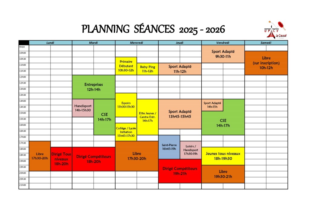 Mardi : compétiteurs – 18h / 20h